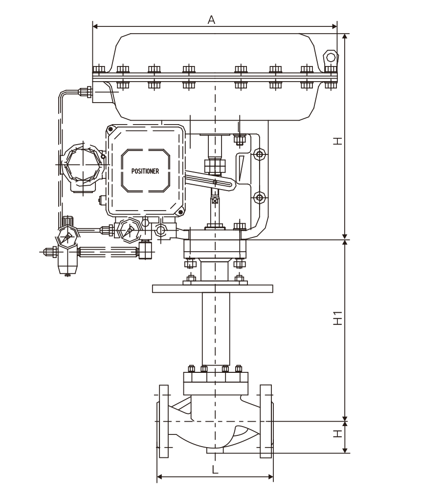 H1 根據(jù)實(shí)際現(xiàn)場較低溫度來設(shè)計(jì)氣動低溫調(diào)節(jié)閥加長桿尺寸